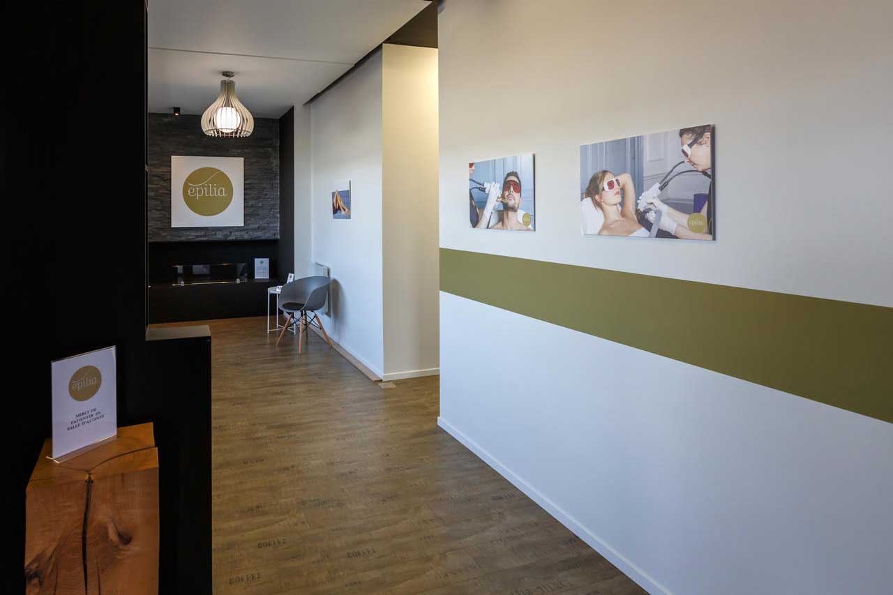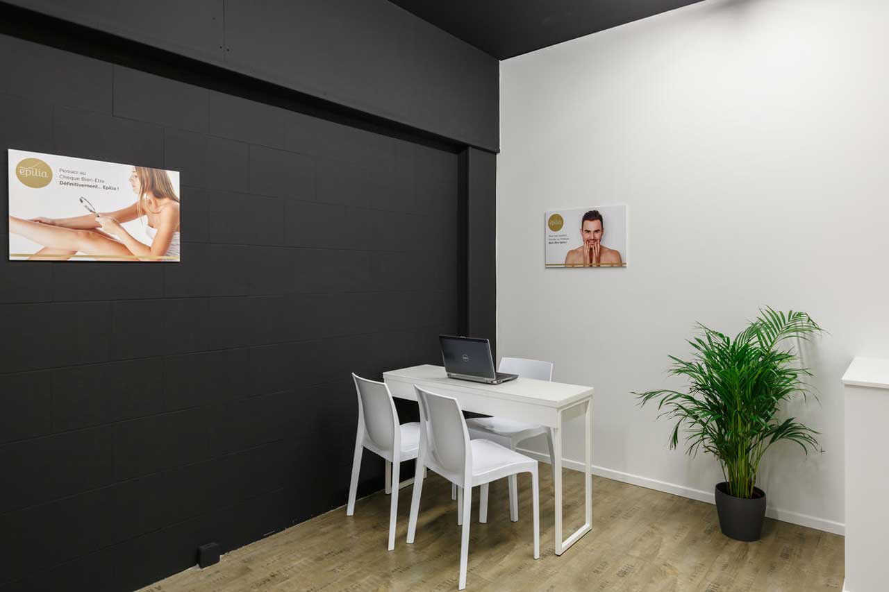 A l’intérieur, la décoration est sobre et épurée. Le blanc, le noir et le bois se marient en douceur pour vous permettre de passer un moment agréable chez Epilia.
