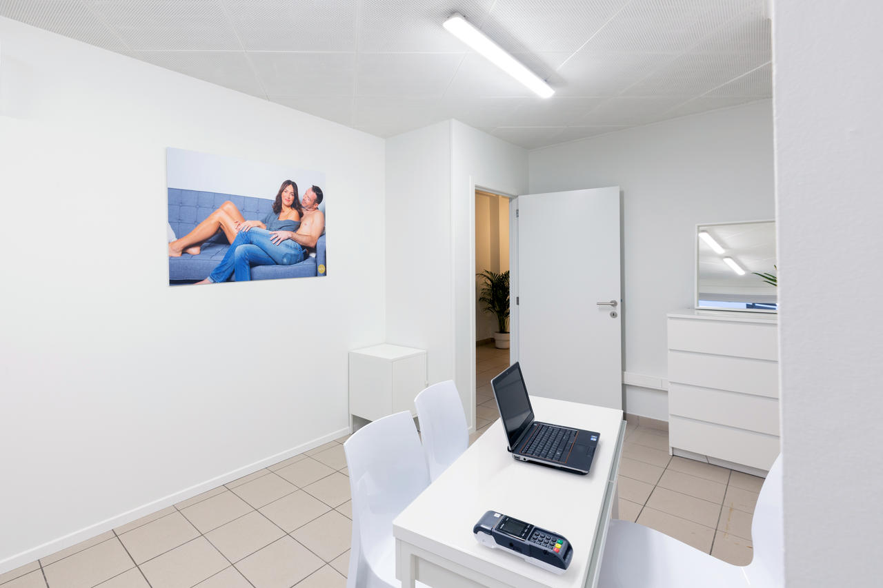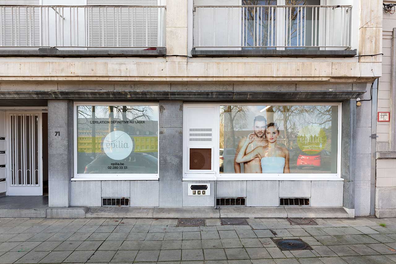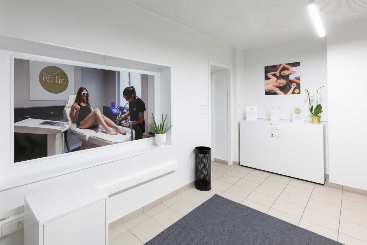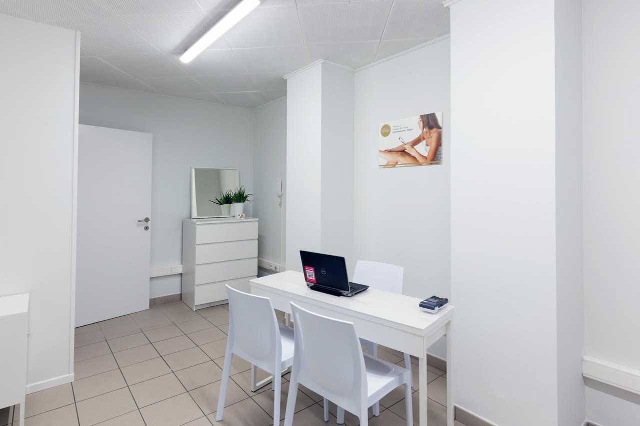 Le centre d’épilation définitive, très épuré, se trouve au rez-de-chaussée d’un immeuble d’habitation.